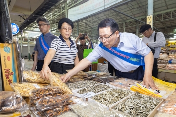 이날 정 시장과 직원들은 추석 명절을 앞두고 북부시장을 비롯한 7개 전통시장을 방문해 명절 장을 봤다.
